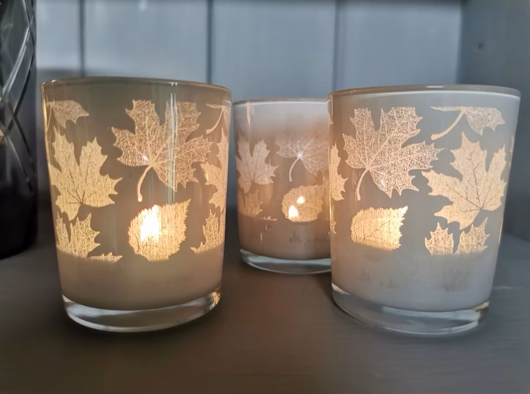 Vackra ljuslyktor med dekorativa löv från Majas Cottage.